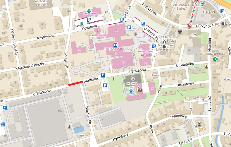 Z důvodu opravy havárie vodovodního řadu bude nejdéle do 17. prosince omezena doprava v ulici U Stadionu u křižovatky s ulicí Tkalcovská. Přímo u křižovatky budou probíhat práce, a tak nebude v těchto místech ulice U Stadionu průjezdná (z obou stran bude slepá).