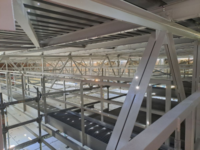 Již nyní probíhá montáž zděných příček či venkovních inženýrských sítí a přípojek. Chystá se zahájení montáže provětrávané a prosklené fasády a sanace betonové bazénové vany.