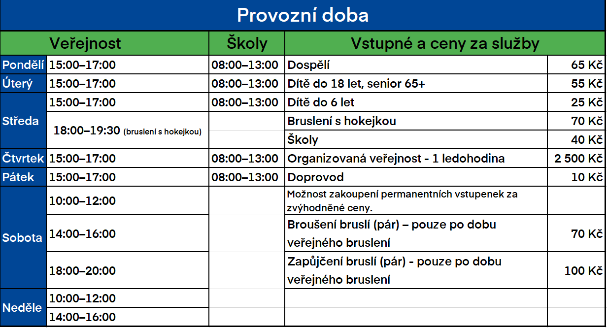 Letošní bruslařská sezóna na zimním stadionu vypukne v sobotu 29. listopadu veřejným bruslením od 14:00 hodin. Na zahájení sezóny jsme nachystáni, ceník zůstává oproti loňské sezóně neměnný a již nyní se na vás těšíme!