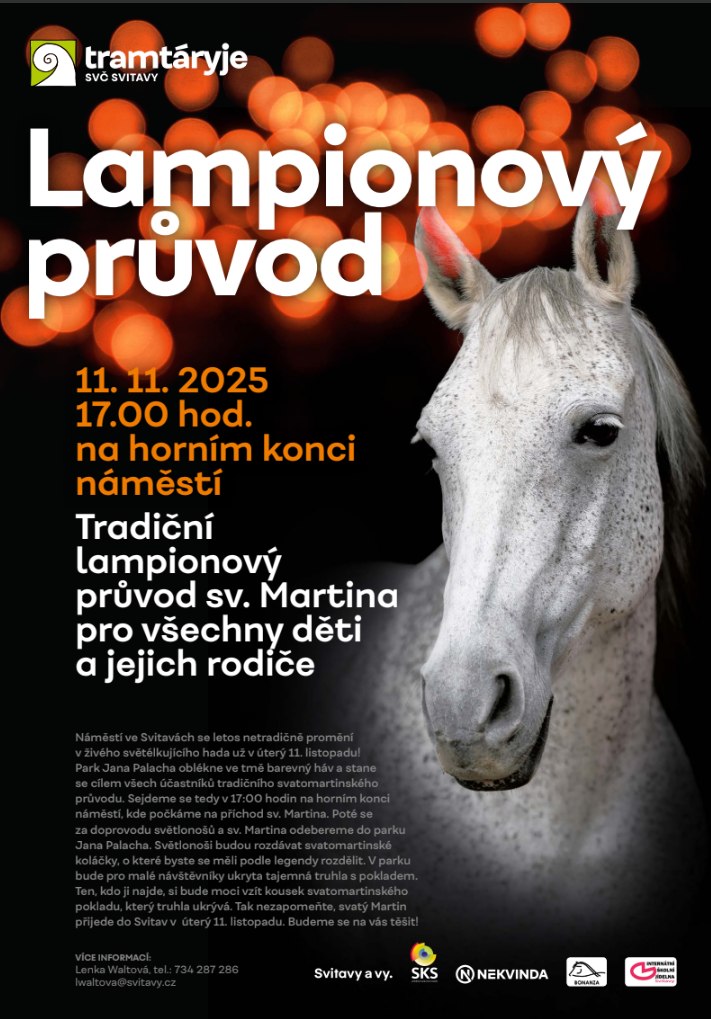 V podvečer svátku sv. Martina ožije svitavské náměstí záplavou světýlek. Tradiční lampionový průvod povede až do parku Jana Palacha, který se na jednu listopadovou noc promění v barevně nasvícené místo plné kouzelné atmosféry.